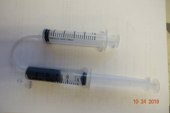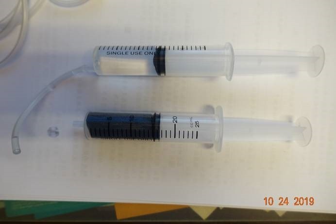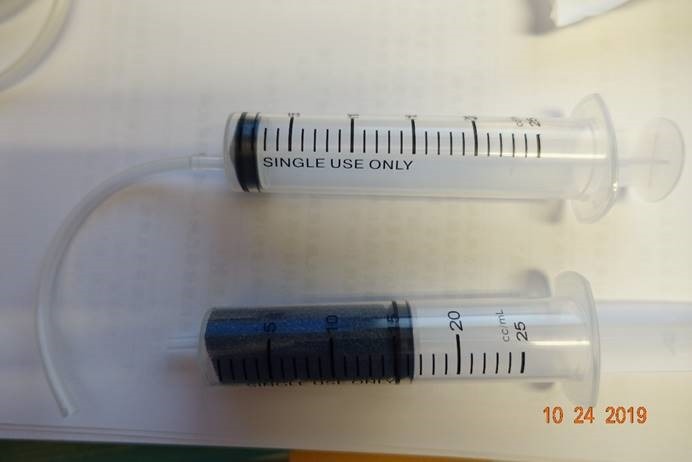 圖4. 我先準備兩個25cc針筒,IV set,及一個泡棉