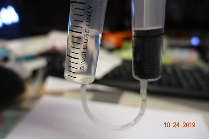 圖7.將水打入裝泡棉的針筒中