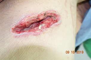 圖2. 左大腿carbuncle術後,使用VAC 1周